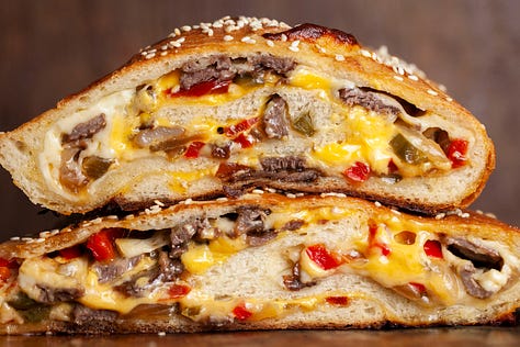 baked brie, cheesesteak stromboli, buffalo chicken nachos, pb&j cookies, hamburger helper, fried wontons
