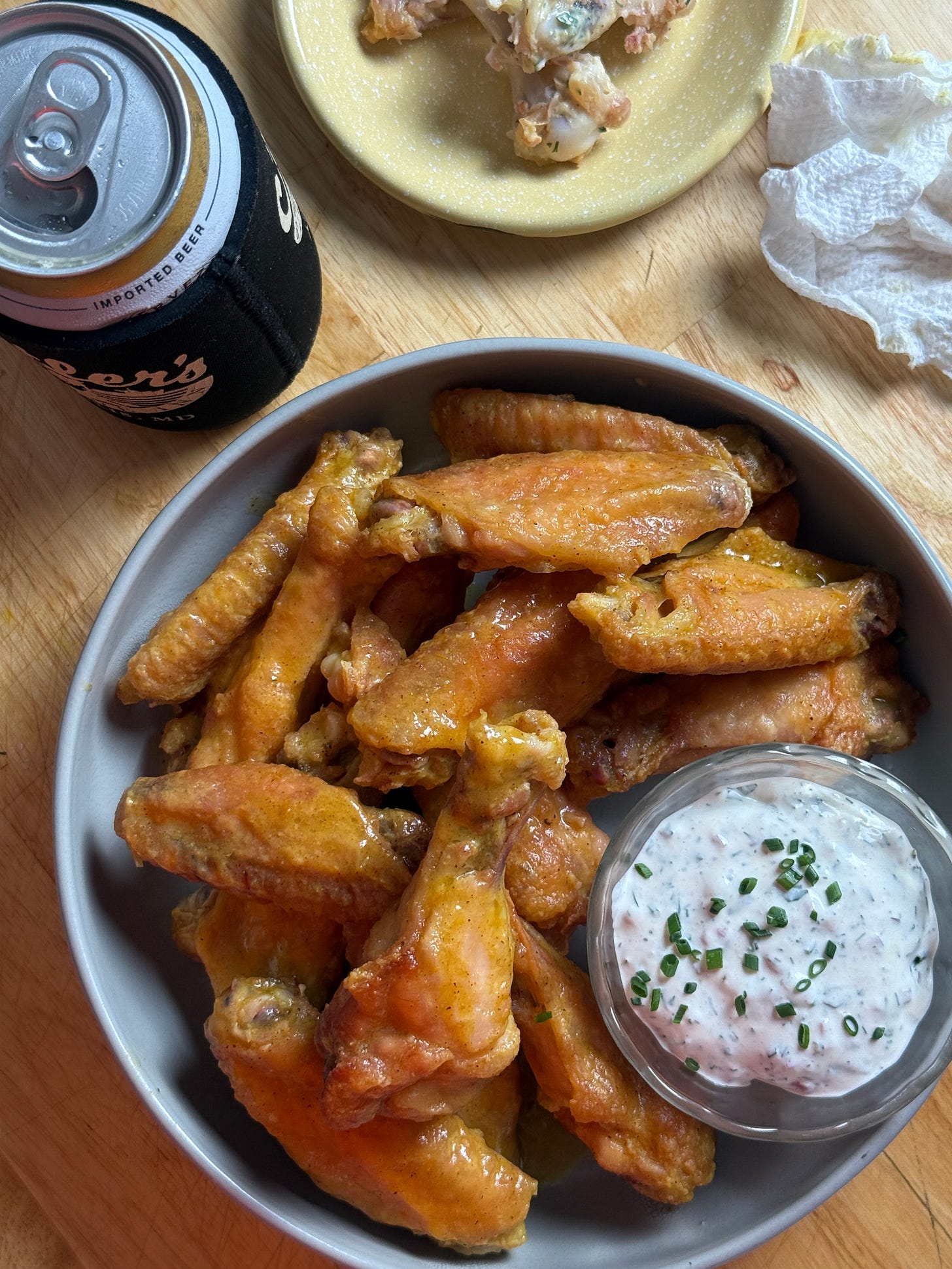 ALSO. I shared a recipe months ago on socials for chicken wings. The thing that I loved about this recipe is that they require NO DEEP-FRYING. And yet! They still end up incredibly crisp!